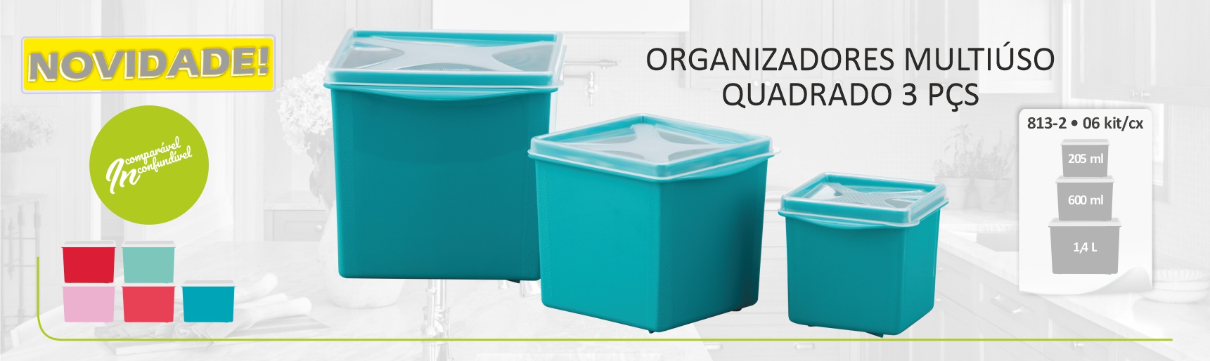 organizador multiúso quadrado 205 ml